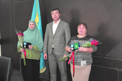 Қала әкімінің орынбасары Алмас Омарханов көпбалалы аналарды «Алтын алқа» және «Күміс алқа» алқасымен марапаттады.