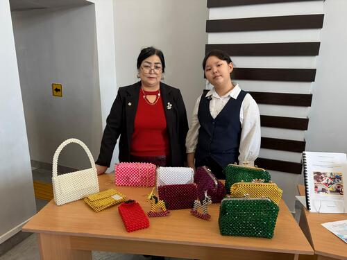 Көрмеде Абай атындағы жалпы білім беретін мектептің 6-сынып оқушысы Ақерке Жарылғаптың қолынан шыққан туындылары, ұстазы - көркем еңбек пәнінің мұғалімі Жайнагүл Мухарханмен бірге моншақтардан жасаған бұйымдары, сөмкелері ел назарына түсті.