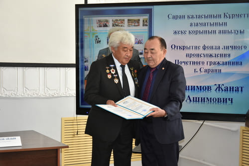 В рамках объявленного Президентом Года рабочих профессий и должностей в городском Доме культуры состоялась торжественная церемония открытия личного фонда Почётного гражданина города Сарани, Почётного работника угольной промышленности, общественного деятеля, патриота и человека, посвятившего свою жизнь служению родному городу и людям Жаната Ашимовича Ашимова, организованная Государственным архивом города Сарани. Государственный архив выполняет несколько важных функций, главная из которых – хранение документов, имеющих историческое, научное, культурное и правовое значение для общества и государства. Комплектование архивного фонда документами личного происхождения остается одним из приоритетных направлений деятельности государственного архива.